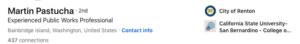 In fairness to most of Renton’s staff, I’m guessing this comment was directed primarily to Renton’s current Public Works Director who lives in Kitsap County on Bainbridge Island. He has never lived in King County, and often uses Zoom to attend Renton meetings. Unlike some of Renton’s workers, he would have no issues affording a Renton residence since he has received annual compensation in the $200,000-$350,000 range most of the past two decades, and lived/worked in the Los Angeles area most of this time. Here is his LinkedIn profile.