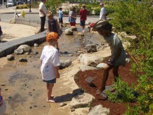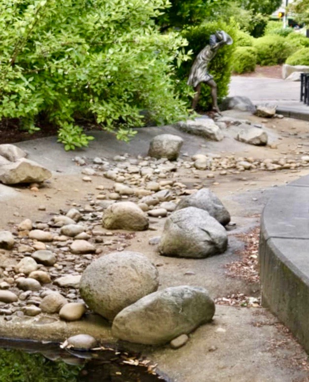 Here’s a photo from out boys enjoying the stream and little girl statue in 2003: